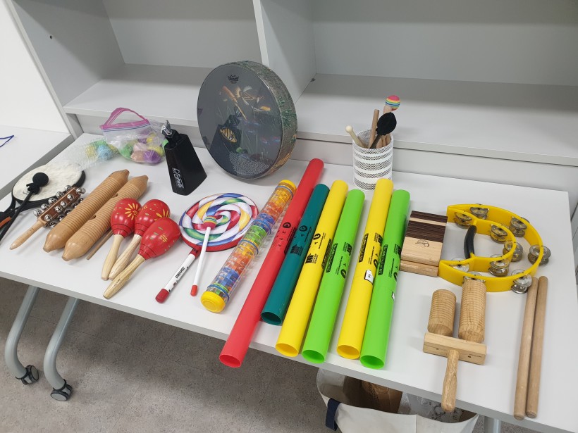 음악심리치료는 다양한 교구를 활용하여 악기연주도 해보고