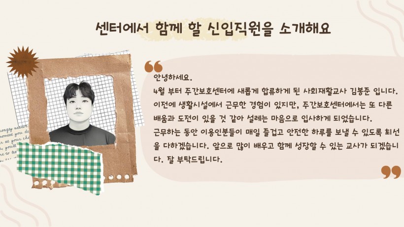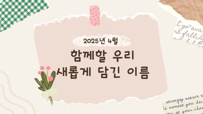 함께할 우리, 새롭게 담긴 이름 페이지 정보 작성자 김미리 작성일25-04-01 20:18 조회1,542회 댓글0건 이전글 다음글 목록 본문 2025년 4월 새롭게 변화 된 저희 센터에 대해 소개합니다. 댓글목록 등록된 댓글이 없습니다. 이전글 다음글 목록