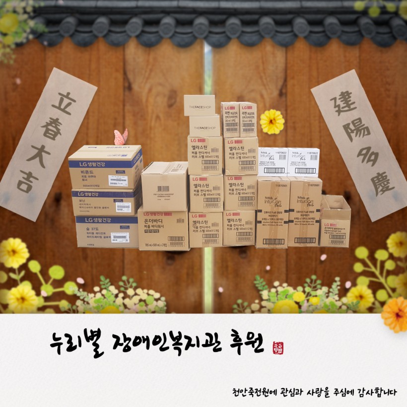 누리별 장애인 복지관에서 생필품을 후원하여 주셨습니다