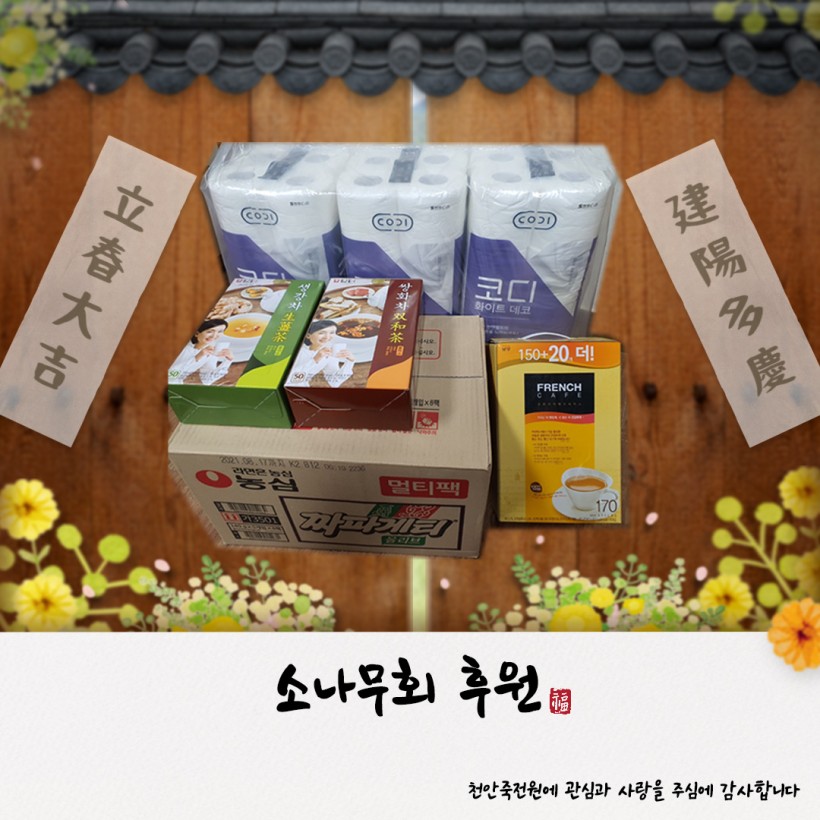 [후원]소나무회 생필품 후원 페이지 정보 작성자 관아골 작성일21-03-08 11:16 조회427회 댓글0건 관련링크 목록 본문 2021.03.06.(토) 소나무회에서 후원을 하여주셨습니다. 봄처럼 따듯한 마음을 전해주심에 다시 한번 감사드립니다 :) 댓글목록 등록된 댓글이 없습니다. 목록