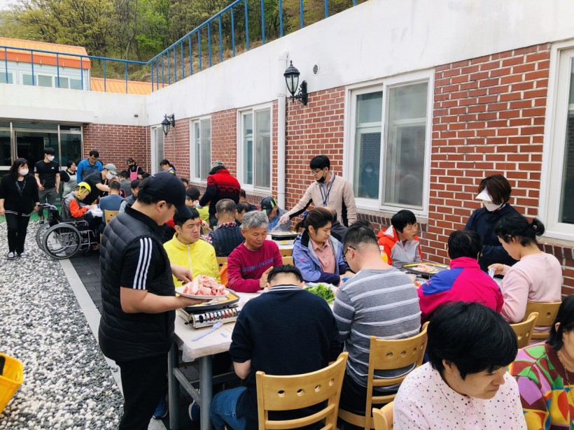 외부에서 레크레이션과 거주인분들이 좋아하시는 삼겹살을 먹으며 즐거운 시간을 보냈습니다.
