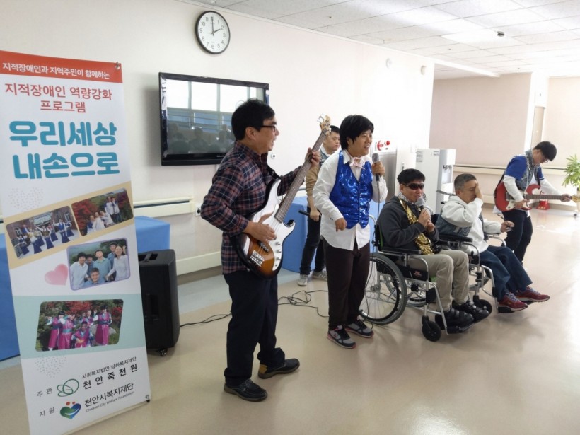 내용: 천안시복지재단지원사업 '우리세상, 내손으로' 동아리 외부공연을 통한 장애인인식개선 사업을 진행하였습니다. 진행에 협조해주신 천안요양병원 관계자 및 뜨거운 호응으로 맞이해주신 어르신분들께 감사의 말씀 전해 드립니다.
