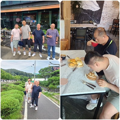 시원한 비맞으며 카페에서 달달한 라떼와 카페주인분께서 서비스로 주신 빵을 먹고 나온후 산책
