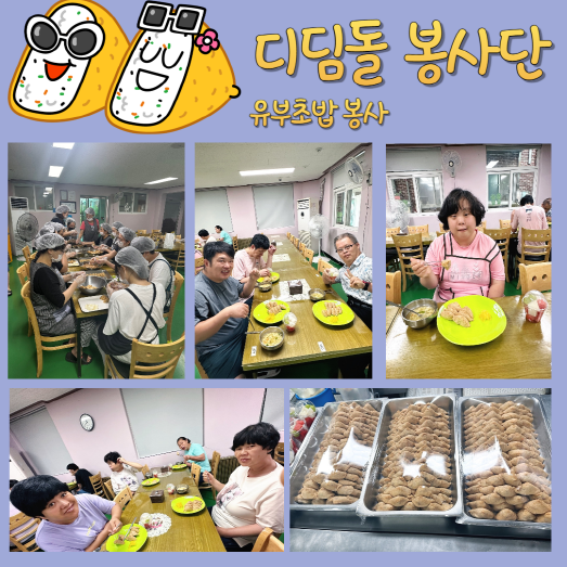 디딤돌봉사단은 매달 셋째주 토요일에 천안죽전원에 방문하여 죽전원 가족들에게 맛있는 유부초밥을 만들어 주시는 정기 자원봉사단입니다.