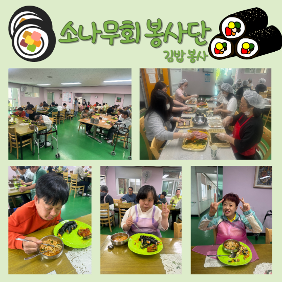 금일 소나무회 김밥봉사자들 오셔서 김밥을 맛있게 만들어주셨습니다.
