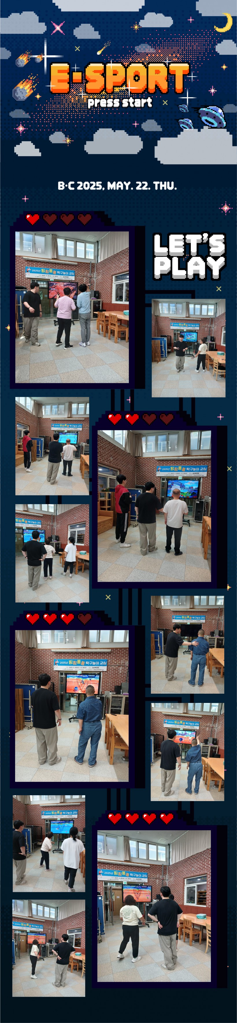 [프로그램] E-SPORTS 페이지 정보 작성자 장경수 작성일25-05-26 19:42 조회458회 댓글0건 관련링크 목록 본문 5/22일 E 스포츠 프로그램을 진행하였습니다. 테니스 게임을 하면서 재미있고 색다른 추억을 만들었습니다. 댓글목록 등록된 댓글이 없습니다. 목록
