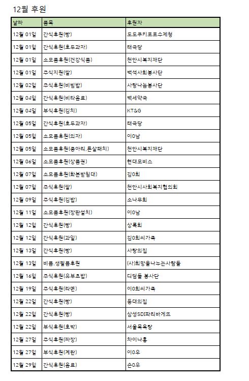 12월 후원품 페이지 정보 작성자 운영자 작성일24-01-05 14:54 조회860회 댓글0건 관련링크 목록 본문 12월 후원해주신 모든 후원자님께 다시 한번 감사드립니다~! 댓글목록 등록된 댓글이 없습니다. 목록