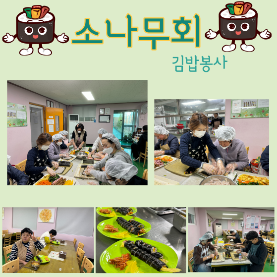 [자원봉사] 소나무회_김밥봉사 페이지 정보 작성자 운영자 작성일24-01-15 17:00 조회704회 댓글0건 관련링크 목록 본문 24.1.13소나무회에서 김밥 봉사를 해주셨습니다이번부터 김밥 만들기에 참여 하고싶은 거주인분들과 함께김밥 만들기를 진행하였습니다.서툴지만 봉사자분들과 함께 하면서 재밌게 진행을 하였습니다.다시 한번 감사드립니다. :) 댓글목록 등록된 댓글이 없습니다. 목록