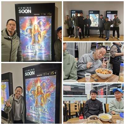내용: 일상생활에서 영화관람을 하고 싶어 하는 거주인분들과 cgv 영화관에 보고 싶어하는 " 더 마블스" 관람을 하면서 즐거운 시간을 보내고, 우리 후원 기업인 "차이나홍"에 가서 맛있는 식사를 하고 왔어요~