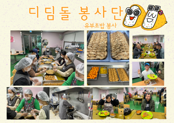[자원봉사] 디딤돌봉사단 페이지 정보 작성자 운영자 작성일23-11-18 12:15 조회658회 댓글0건 관련링크 목록 본문 23.11.18(토)디딤돌봉사단에서 유부초밥을 준비해 주셨습니다.점심으로 정성이 들어간 유부초밥을 먹으니 더욱더 맛있는 점심식사 시간이 되었습니다.봉사해 주신 봉사자분들께 다시 한번 감사드립니다 :) 댓글목록 등록된 댓글이 없습니다. 목록
