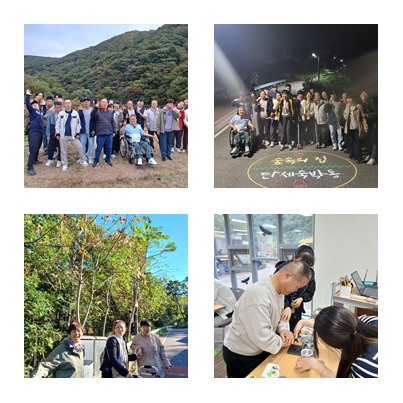 10.19.~20 경북 칠곡군 석적읍에 위치한 칠곡숲체원에 다녀왔습니다.숲속에 아담하게 자리잡은 숲체원에서 숲을 경험하고 자연의 소중함을 체험하는 시간을 가졌습니다.가족들의 맑은 웃음소리와 가을 햇살의 투명함이 함께 어우려져 너무 즐거운 시간이었습니다.