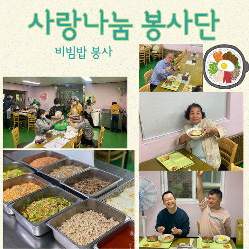 [자원봉사] 사랑나눔봉사단 페이지 정보 작성자 운영자 작성일23-10-07 11:46 조회597회 댓글0건 관련링크 목록 본문 23.10.07(토)사랑나눔 봉사단이 월 1회 비빔밥 봉사를 위해 천안죽전원에 방문했습니다.영양가 있고 맛있는 비빔밥을 제공해 주셔서 감사합니다~ :) 댓글목록 등록된 댓글이 없습니다. 목록
