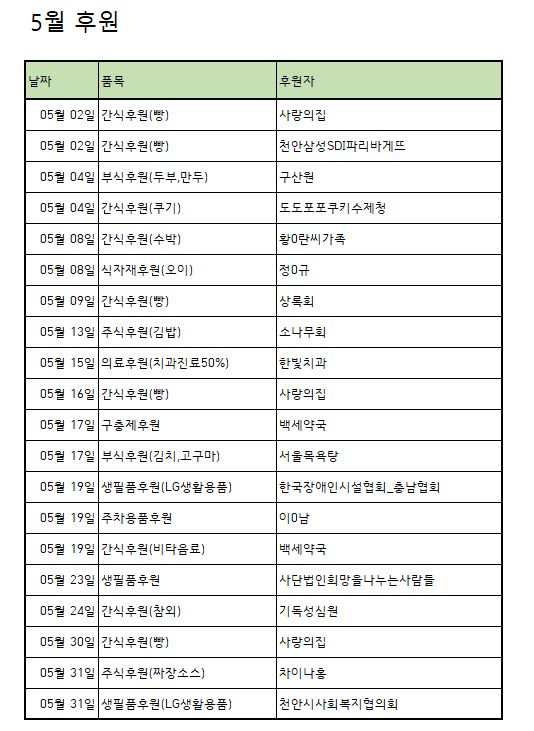 [후원]5월 후원품 페이지 정보 작성자 운영자 작성일23-06-08 17:38 조회427회 댓글0건 관련링크 목록 본문 5월 후원해주신 모든 후원자님께 다시 한번 감사드립니다~! 댓글목록 등록된 댓글이 없습니다. 목록