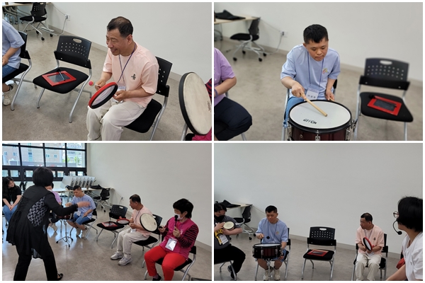 이0한씨는 음악치료내내 밝은 웃음을 지으며 즐거워 하셨고 안0엽씨는 박자맞추는게
