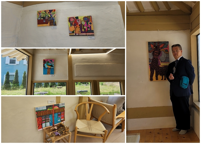 오는 12일 전시회를 시작하기 전에 본인이 그린 그림을 살펴보시며 하나하나 벽에 걸어 두셨습니다.
