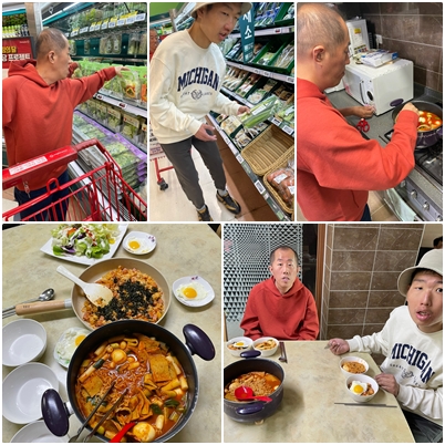 조심스레 사용하며 음식을 요리하셨습니다. 나름 가족들의 손맛이 있었습니다. 메뉴는 라볶이와 김치볶음밥, 샐러드 3가지였습니다. 음식이 잘 요리 된 후 체험홈 가족들과 맛있게 나누어 드셨고, 뒷정리를 하고 천안 죽전원으로 안전하게 귀원하셨습니다.