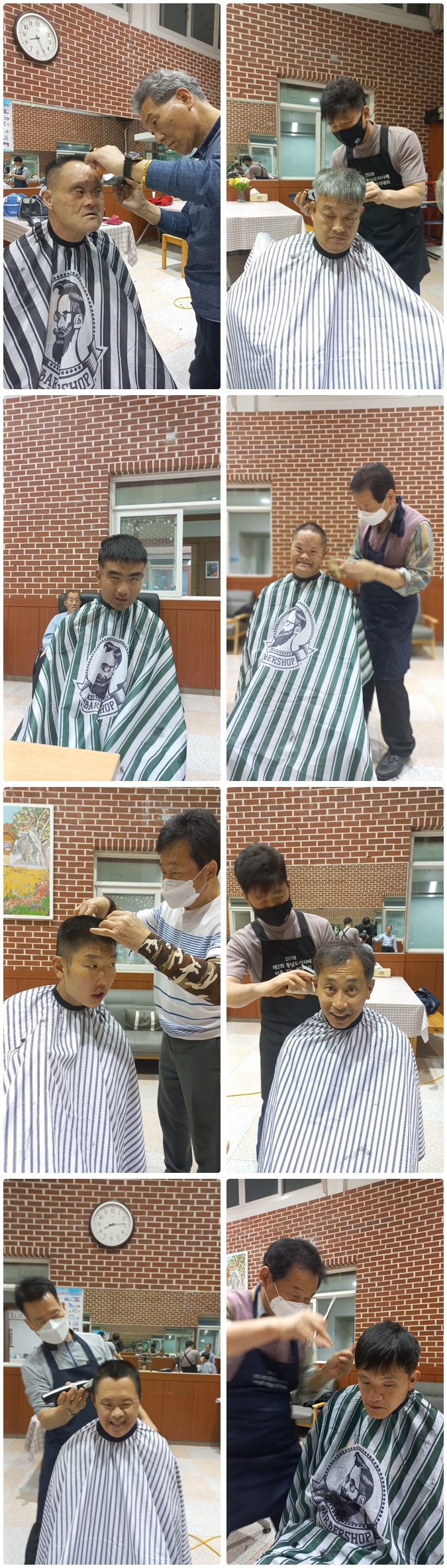 오늘은 이용협회분들이 오셔서 이발을 해주셨습니다.