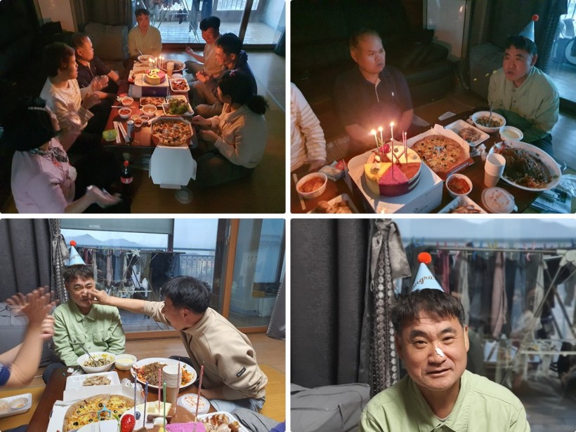 현배 씨의 생신을 축하드리기 위하여 체험홈 가죽분들이 전부