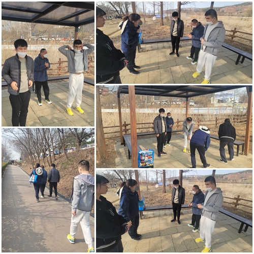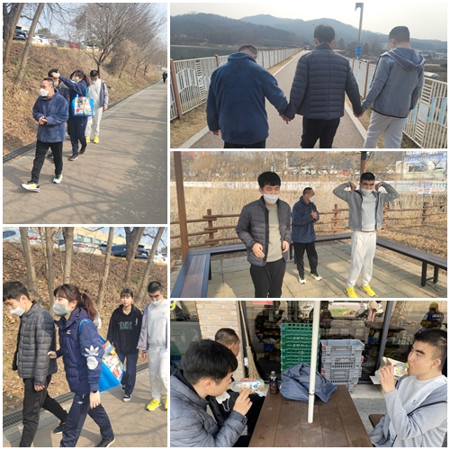 가족분들이 새로오신 선생님과 어색한 인사를 나누고 함께 친해지길 바라며 힘찬 발걸음으로 건강걷기를 하였어요.