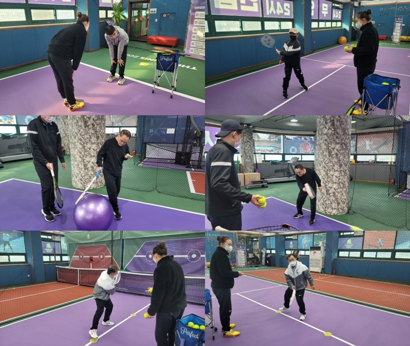 테니스를 자주 진행하다보니 실력이 부쩍 성장한 것이 보이시죠?