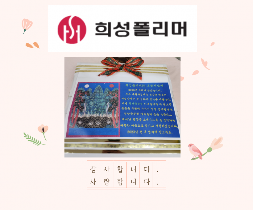 후원 감사 떡 전달 페이지 정보 작성자 운영자 작성일23-01-18 14:26 조회319회 댓글0건 관련링크 목록 본문 오랜시간 천안죽전원 가족들을 후원해 주시는 희성폴리머(주)에 가족들의 마음과 정성을 담아 떡을 전달하였습니다.항상 감사합니다! 풍성한 명절 보내세요! 댓글목록 등록된 댓글이 없습니다. 목록