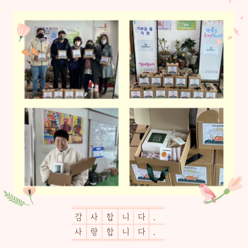 [후원]늘해랑학교 페이지 정보 작성자 운영자 작성일22-12-30 14:21 조회339회 댓글0건 관련링크 목록 본문 22.12.23(금)늘해랑학교에서 후원품전달을 위해 방문해 주셨습니다.학생들이 직접 만든 컵받침,마스크걸이 등 정성이 느껴지는 후원품을 준비해 주셨습니다.많은 눈으로 교통상황이 좋지 않았음에도 불구하고 찾아와 주셔서 감사합니다. 댓글목록 등록된 댓글이 없습니다. 목록
