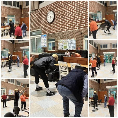 10월 2번째 정다운 친구들 댄스 시간으로 거주인들이 댄스강사님의 춤 동작을 따라서 땀 흘리며 시간을 보냈습니다^^