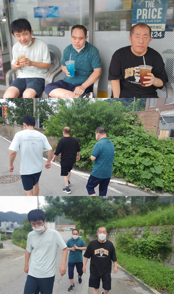 편의점까지 걸어서 다녀왔어요. 다들 힘들어하셨지만