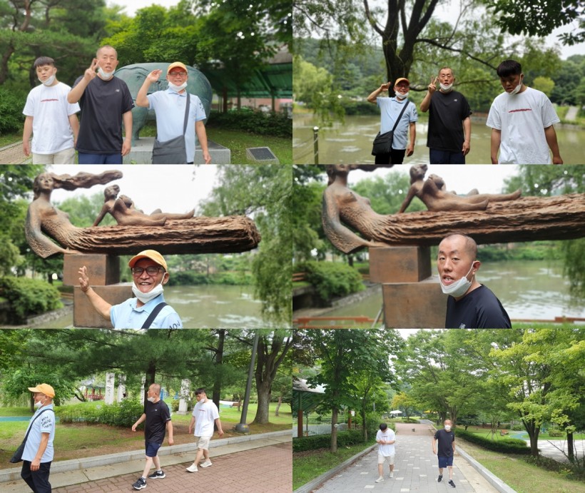 아주 산에 올라갔다가 내려와서 공원을 돌았습니다.