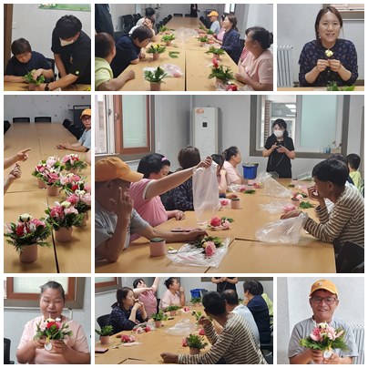 죽전원에서는 외부 강사님을 모시고 격주로 진행하는 화훼교실 프로그램을 운영하고있습니다 .