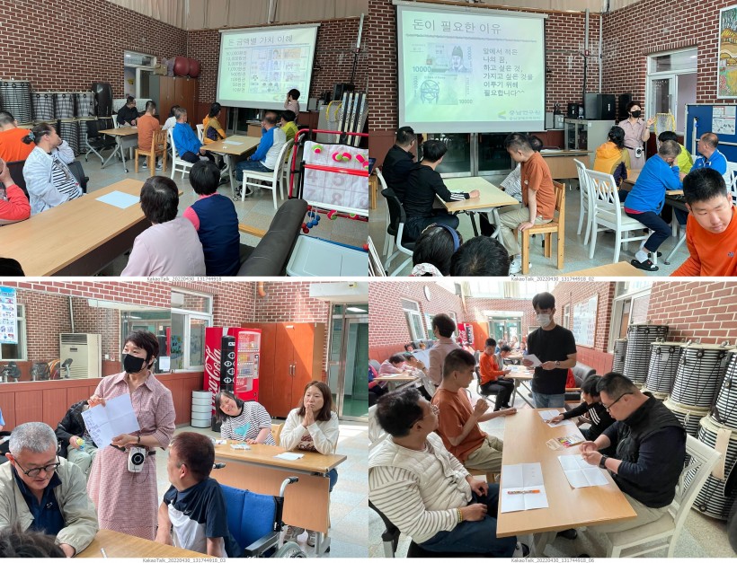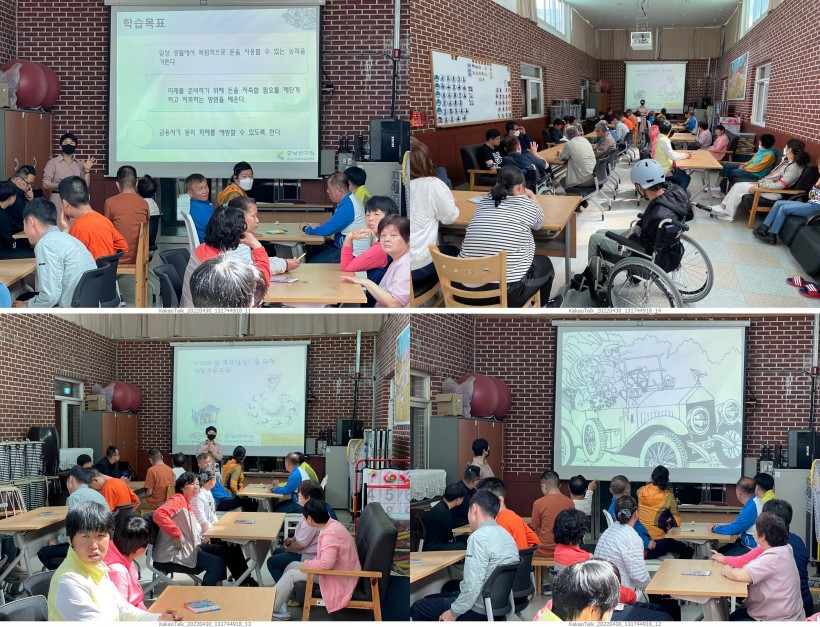 충남경제교육센터에서 강사님이 오셔서 천안 죽전원 거주인46명을 대상으로 금전관리교육을 진행하였습니다.