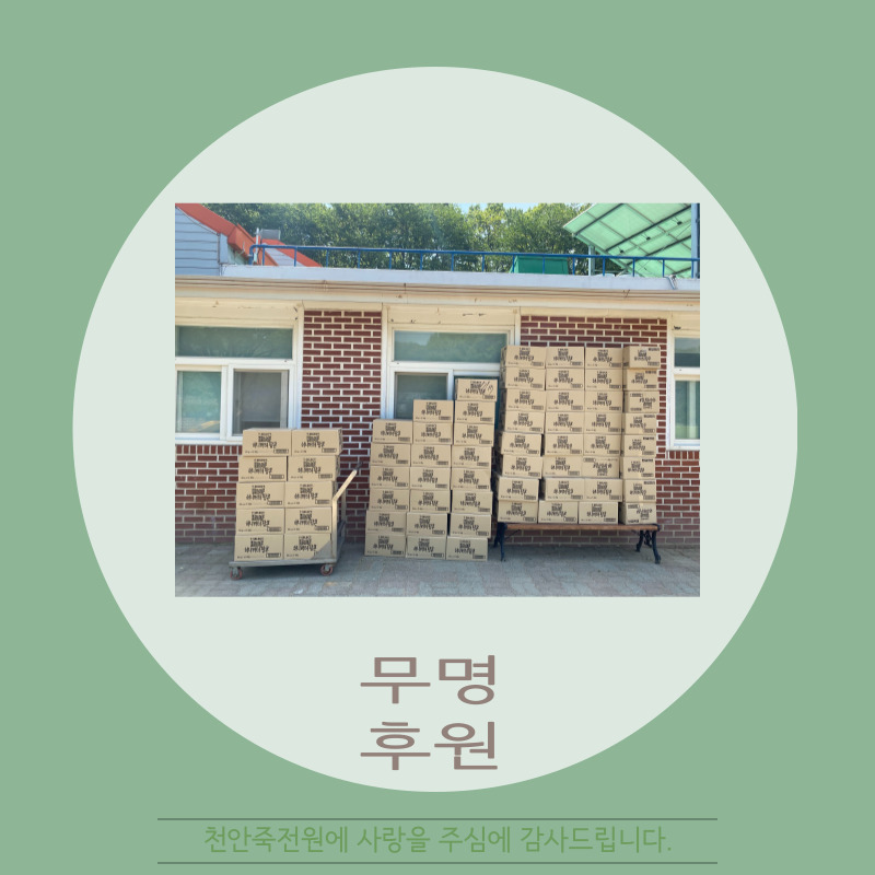 [후원]무명후원자 페이지 정보 작성자 운영자 작성일22-05-11 09:54 조회289회 댓글0건 관련링크 목록 본문 2022.05.02(월)무명후원자님께서 천안죽전원을 방문하여 간식 후원을 해주셨습니다.감사합니다 :) 댓글목록 등록된 댓글이 없습니다. 목록