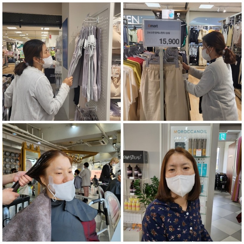 검은 뿌리가 많이 자라서 머리색을 맞추기 위해 오랜만에 염색과 클리닉도 받고, 옷도 사러 갔다왔어요.