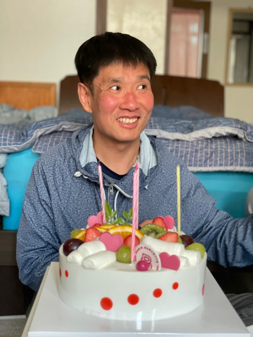 죽전원 가족들이 모두모여 맛있는 치킨과 케익을 먹으며 생일을 축하해주었습니다.