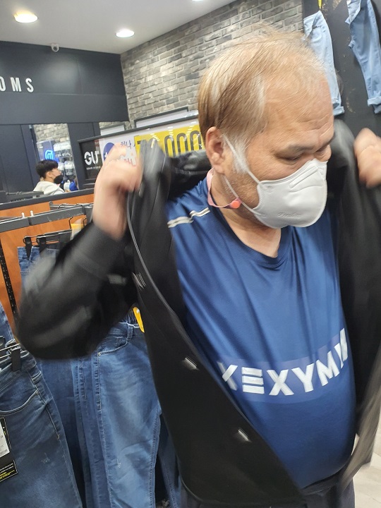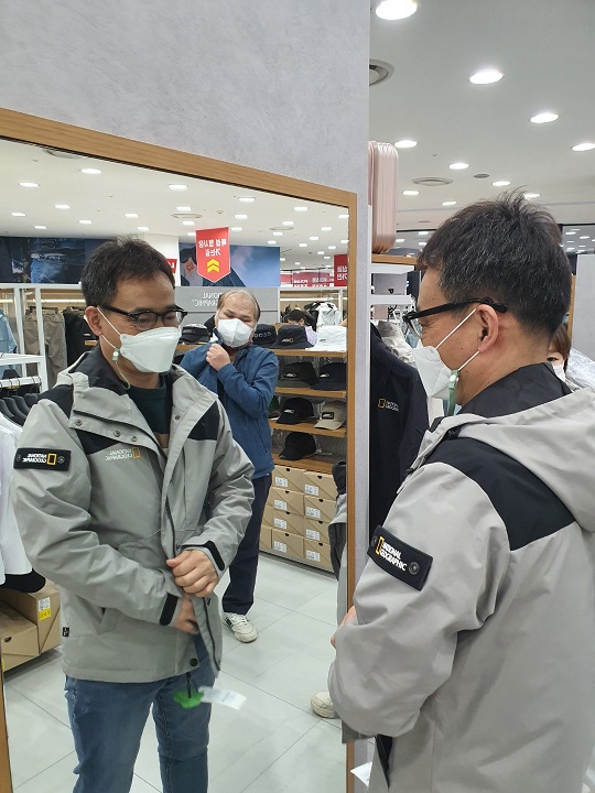 피팅 후 거울을 보며 잘 어울리는지, 가격은 합리적인지 생각하며 구입하였습니다.