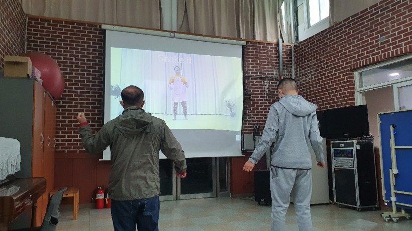 다들 밖에 나가고 싶어 하셨지만 비가오는바람에 즐거운 건강체조를 진행했습니다.