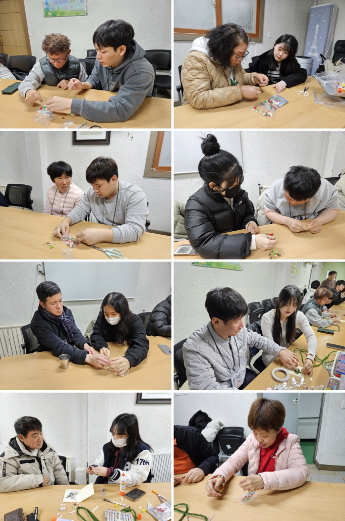 [자원봉사] 백석사회봉사단 페이지 정보 작성자 운영자 작성일24-12-06 16:47 조회468회 댓글0건 관련링크 목록 본문 24년 12월 05일 목요일오늘은 백석봉사단 학생들과 크리스 마스 팔찌 만들기 활동을 하였습니다. 가족들 모두 재미있어 하셨습니다. 함께해 주셔서 감사합니다! ^^ 댓글목록 등록된 댓글이 없습니다. 목록