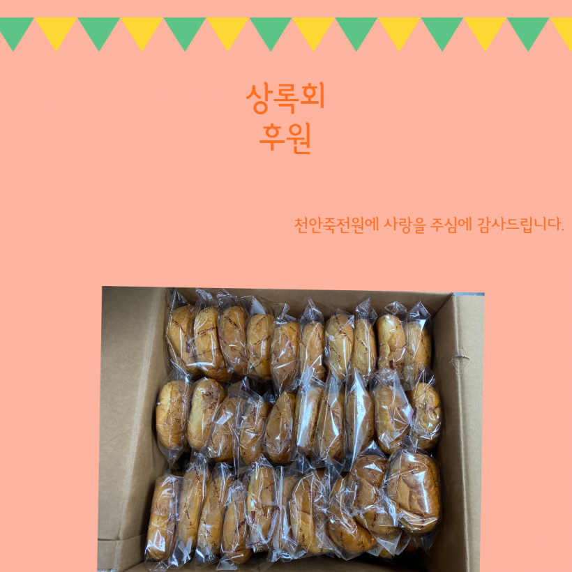 [후원] 상록회 페이지 정보 작성자 운영자 작성일21-12-31 16:36 조회258회 댓글0건 관련링크 목록 본문 2021.12.29(수)상록회에서 직접 만든 단팥빵을 후원해 주셨습니다.감사합니다. 댓글목록 등록된 댓글이 없습니다. 목록