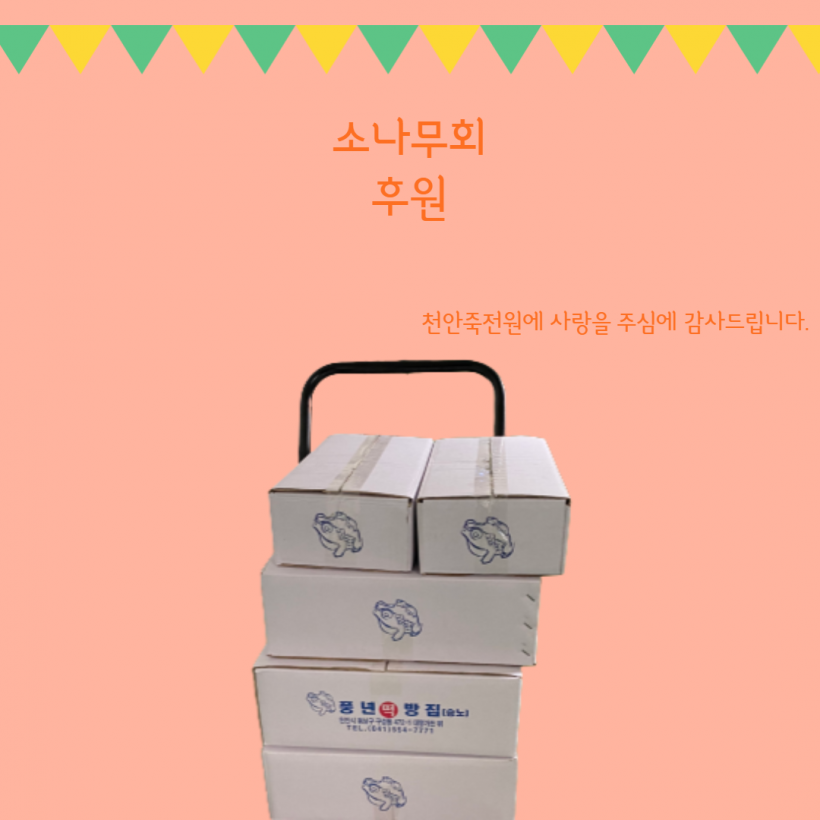 [후원] 소나무회 페이지 정보 작성자 운영자 작성일21-12-31 16:40 조회281회 댓글0건 관련링크 목록 본문 2021.12.30(목)죽전원으로 방문하셔서 떡국떡을 전달해 주셨습니다항상 감사드립니다. 댓글목록 등록된 댓글이 없습니다. 목록