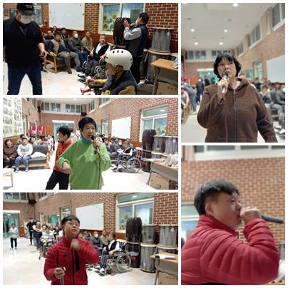 [프로그램]신바람 노래방"죽전노래경연대회" 페이지 정보 작성자 사랑마당 작성일21-12-10 13:56 조회376회 댓글0건 관련링크 목록 본문 12월 2일 저녁 6시 30분 저녁식사를 맛있게 드시고 모든 거주딘들이 모여서 서로서로 노래를 자랑하면서 즐거운 시간을 만들었다. 댓글목록 등록된 댓글이 없습니다. 목록