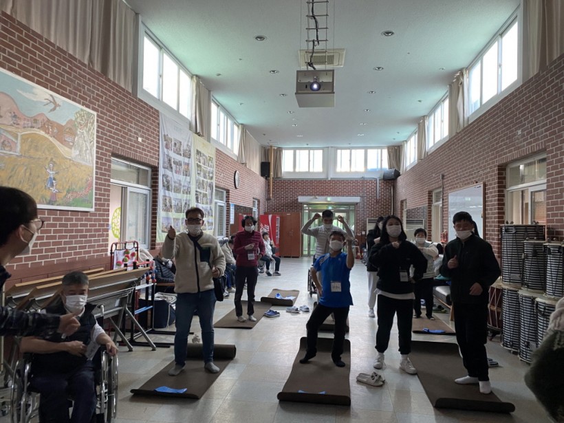건강체조와 춤을 배우며 참여하는 모습이 행복해 보입니다~