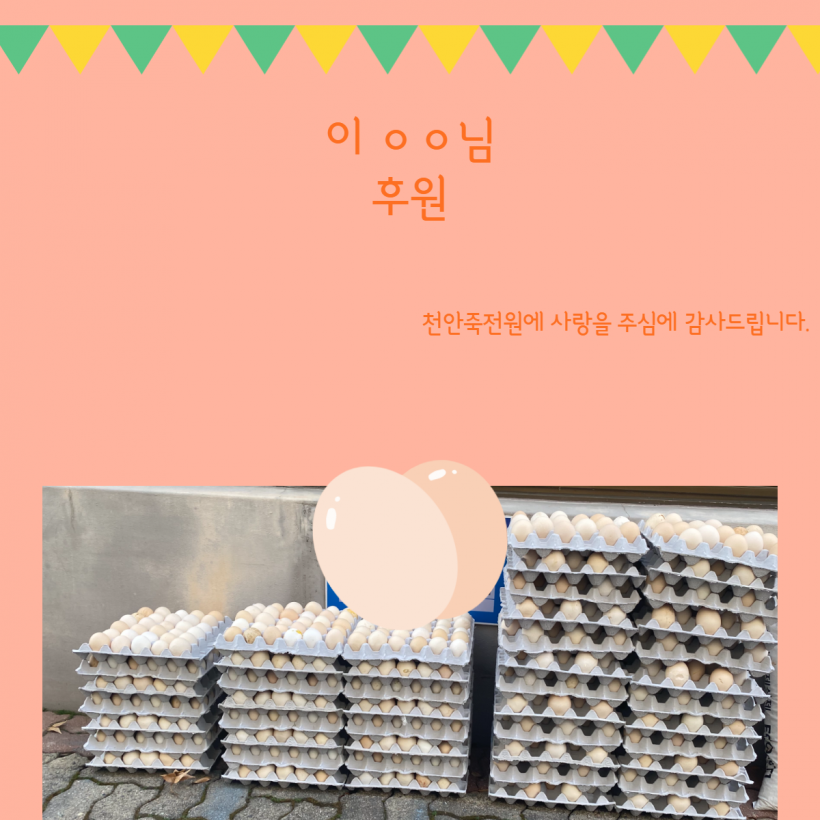 [후원]이ㅇㅇ님 페이지 정보 작성자 운영자 작성일21-11-29 15:23 조회306회 댓글0건 관련링크 목록 본문 21.11.29(월)이**님께서 계란을 후원하여 주셨습니다 매번 많은양의 계란 후원 감사드립니다 ^^~ 댓글목록 등록된 댓글이 없습니다. 목록