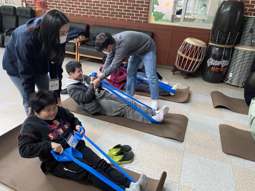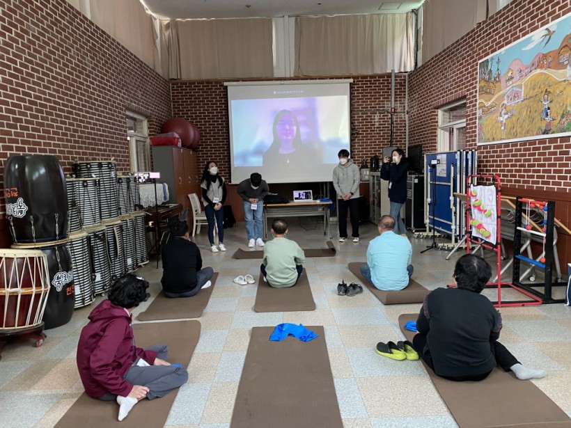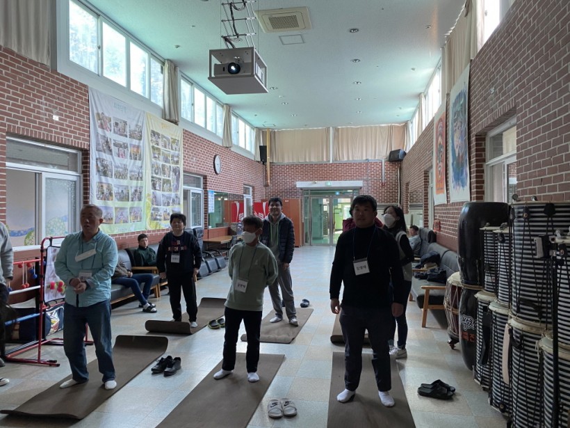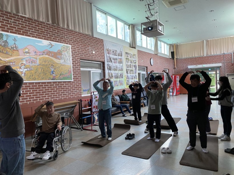 체력증진실에서 간단한 체조와 춤을 배우는 시간을 가졌습니다.