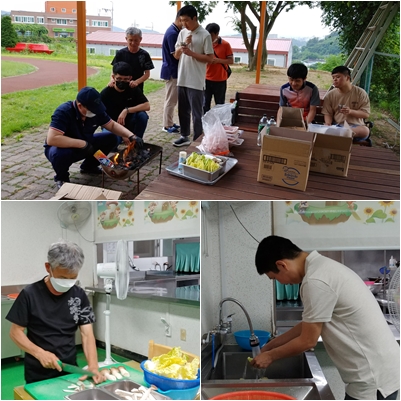 6월17일 샘마을 2번지 가사실습을 했습니다. 시설에서 삼겹살을 6근 후원해주시고, 백** 선생님이 맛있는 쌈채소를 듬뿍 후원해주셨습니다. 윤** 선생님은 석쇠와 착화탄을 통크게 후원해 주셨습니다. 덕분에 죽전원 가족들이 맛있는 고기를 나눠 먹을 수 있었습니다.