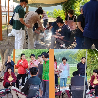 05월 27일 꽃마을 2번지 가사실습을 진행했습니다. 야외에서 고기를 구워 먹기로 했는데, 오전까지 비가오고, 직전까지 바람이 불어서 걱겅을 많이 했습니다. 하지만, 프로그램을 시작하자 거짓말처럼 날씨가 좋아졌습니다. 시설에서 삼겹살도 후원해주시고, 국장님이 귀한 고구마도 후원해주셔서 꽃마을 2번지 가족뿐만 아니라, 죽전원 가족들 모두 넉넉하고, 풍요롭게 프로그램에 참여했습니다.