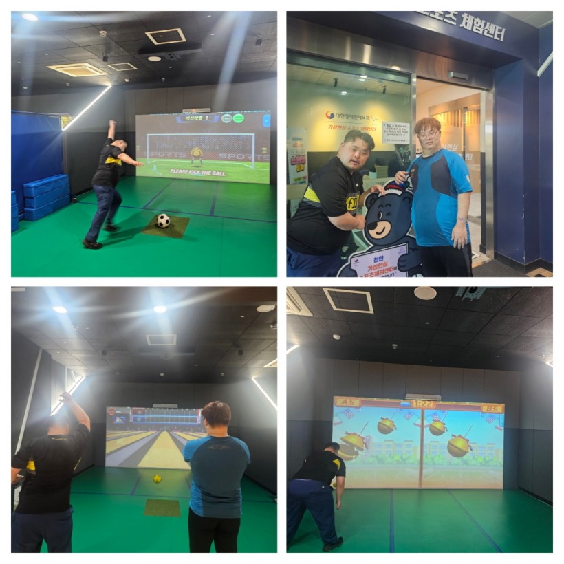 이 프로그램은 천안시장애인종합체육관 내 가상현실 스포츠 체험 공간에서 진행되고, 이용인들은 축구, 야구, 사격, 볼링 등 실외에서 하기 어려운 다양한 스포츠를 실내에서 안전하고 즐겁게 VR로 생생하게 즐기고 있습니다.