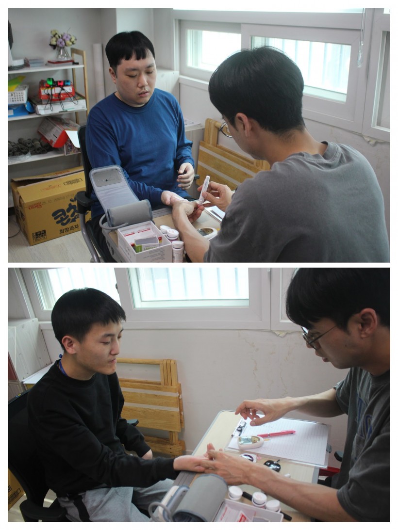 의료진이 센터를 직접 방문해 이용인을 대상으로 혈당, 혈압, 콜레스테롤, 빈혈 여부 등을 측정하여 기초 건강 상태를 점검하였고, 개인별 건강상태에 대한 간단한 상담도 이루어졌습니다.
