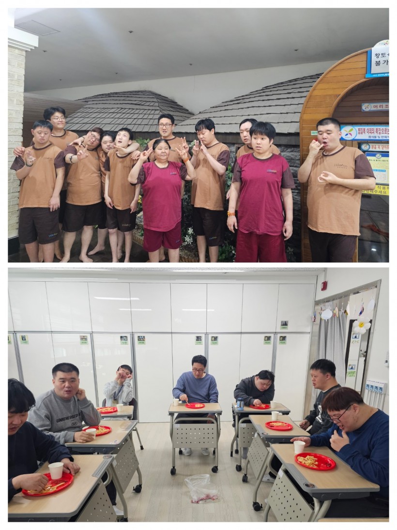 찜질방 대표 간식인 구은 계란과 식혜를 먹으며 도란 도란 이야기도 나누고 서로의 머리에 계란을 대고 장난도 치며 미소가 끊이지 않는 시간을 보냈고 센터로 돌아오는 길에는 맛있는 감자튀김을 구입해 센터에서 나누어 먹으며 신난데이 활동을 마무리하였습니다.