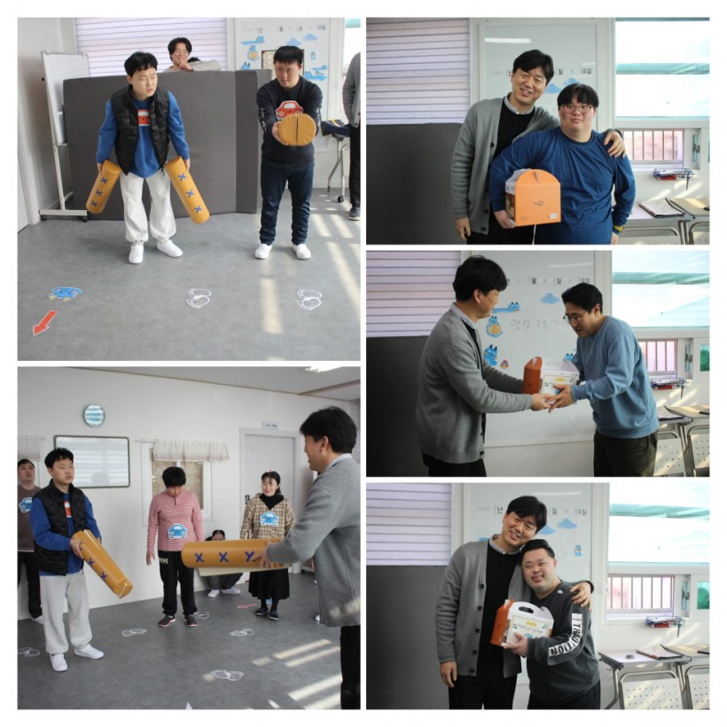 대부분의 이용인들이 대형윷에 관심과 흥미를 보이는 모습을 보였으며, 동료와 함께 윷을 던질 때 매우 즐거워하는 모습을 보였습니다. 윷놀이를 마친 후에는 이긴 팀에게 먼저 설날 선물을 제공하였고, 진 팀에게도 수고했다는 의미로 설날 선물을 제공하며 설날의 분위기를 만끽할 수 있었던 소중한 시간이었습니다.