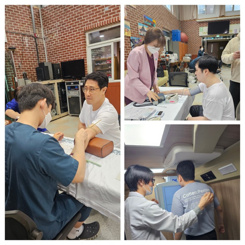 순천향대학병원 의료진이 직접 방문하여 진행되는 건강검진은 기본적인 혈액검사와 X-Ray, 시력검사, 청력검사 등 다양한 검진이 진행되어 병원에 직접 내원하지 않아도 정밀하게 검사를 받을 수 있어 이용인과 보호자 모두 만족하는 사업 중 하나 입니다.